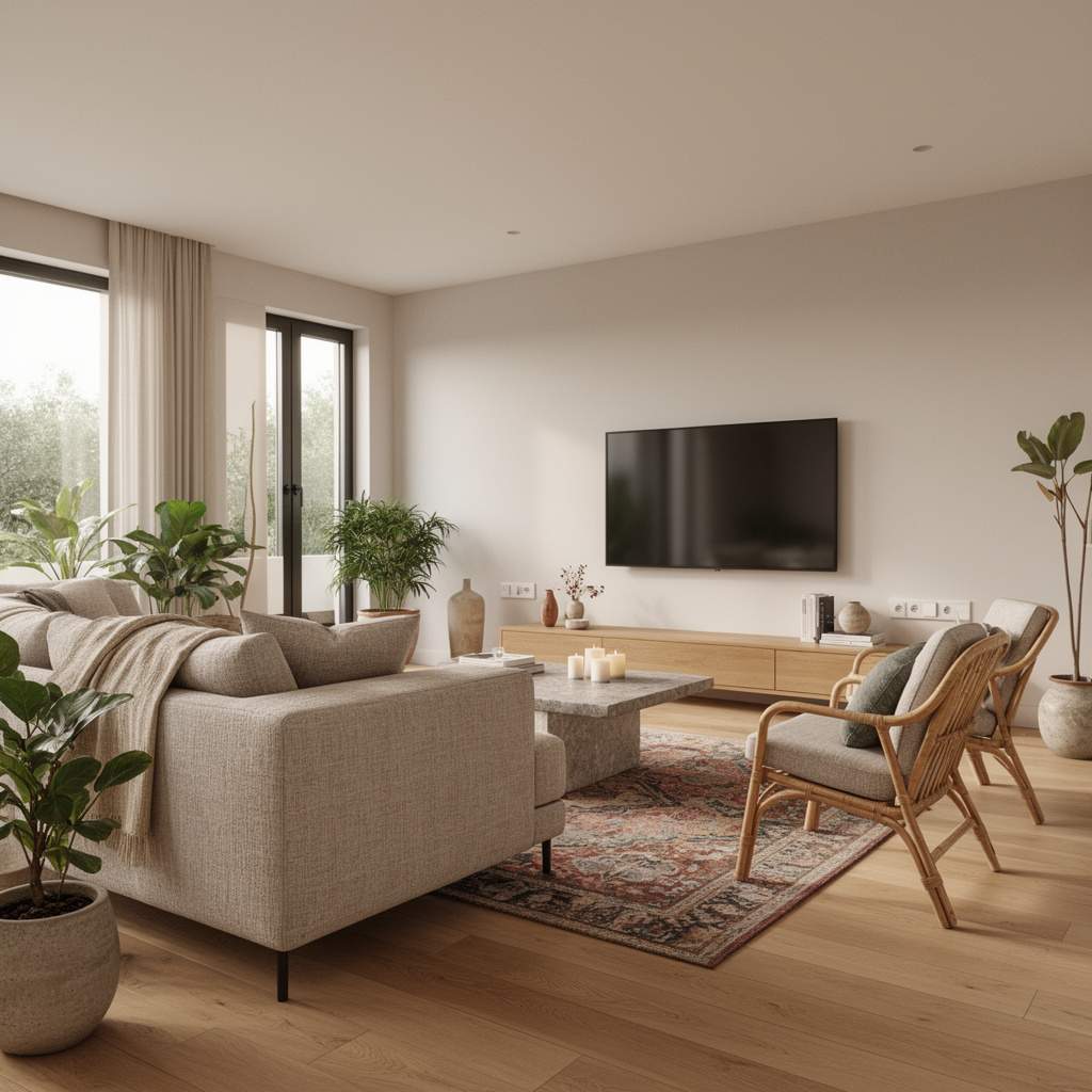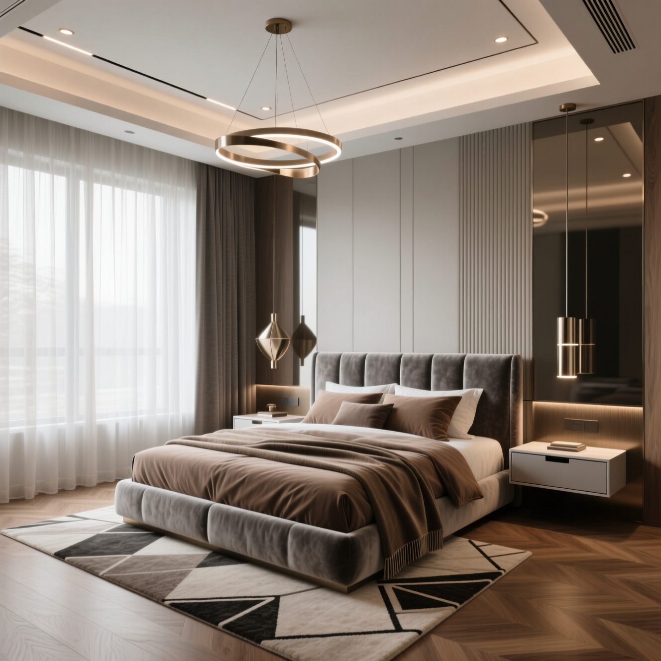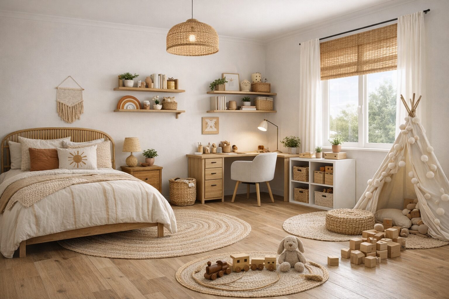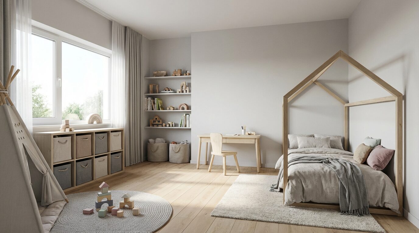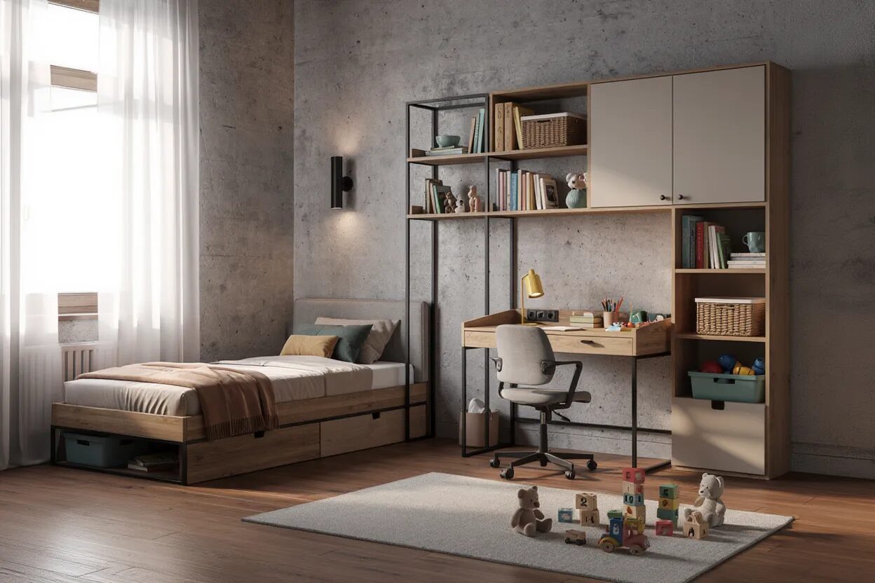 Przygotowywany jest moodboard przedstawiający propozycje tkanin, kolorów, wzorów i dekoracji. Ułatwia to podejmowanie decyzji dotyczących preferowanej estetyki i elementów wyposażenia.Obraz przestrzeni w 3D